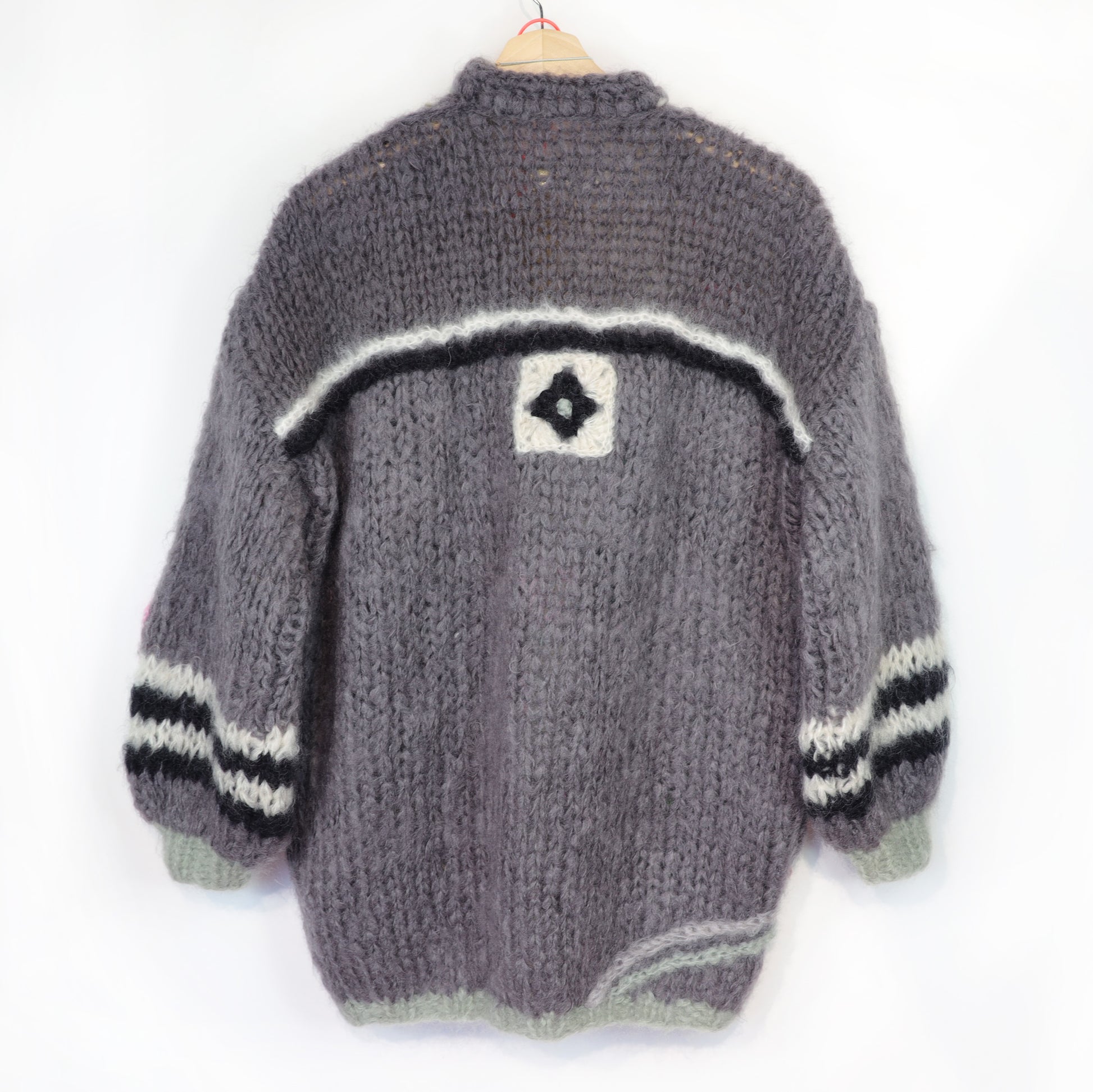 This is a handmade knit made by MYPZ in The Netherlands. Each cardigan or sweater is a unique piece and we take a lot of time and care to create these beautiful products. This beautiful sweater is made of a high quality mohair and does not pill. It is very light, warm and comfortable. These brushed yarns may shed a little but after a while, this will subside.