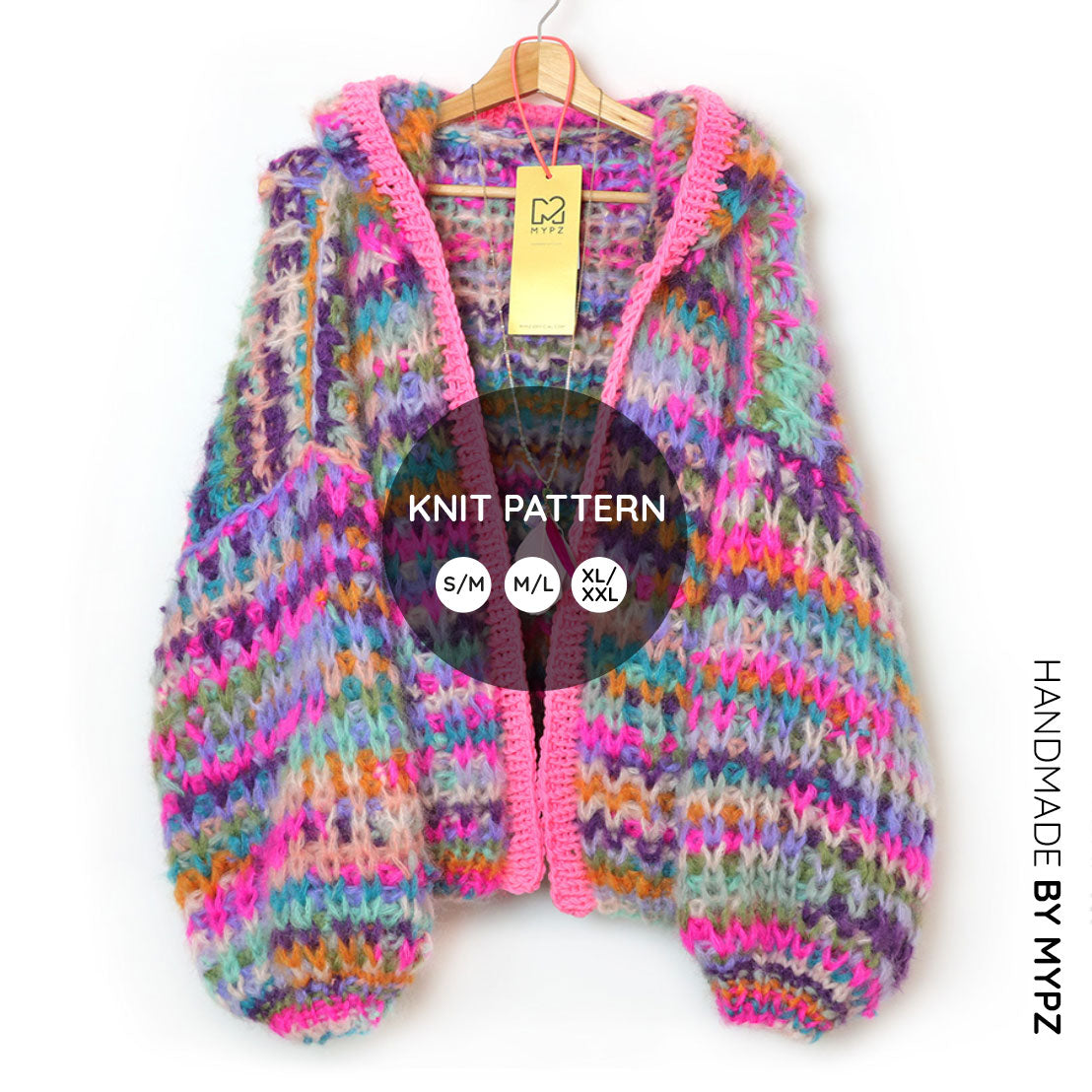 Knit pattern – MYPZ Chunky Mohair Rib Cardigan Confetti with hoodie No.12 (ENG-NL)