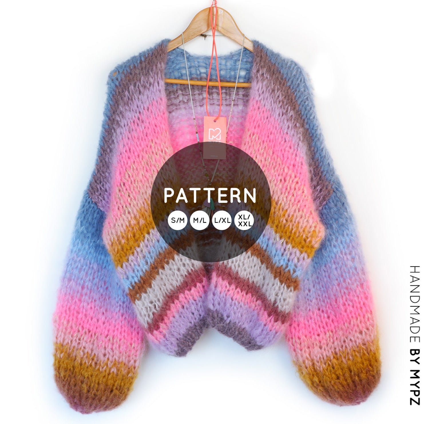 Knit pattern – MYPZ short chunky Mohair cardigan Blue Moon No15 (ENG-NL-DE)