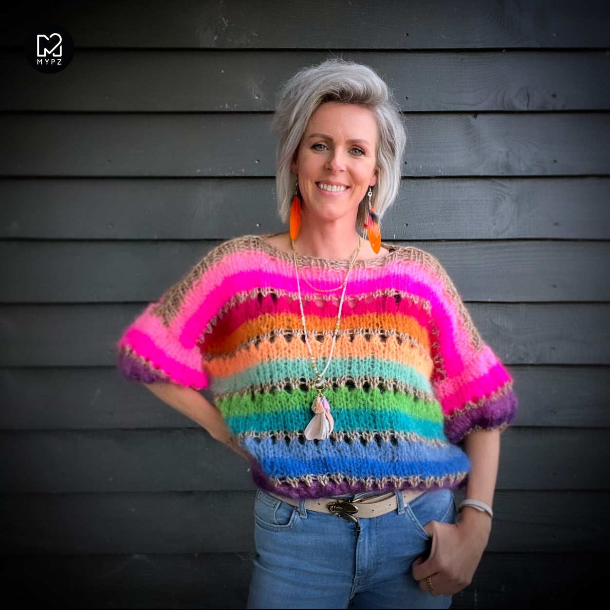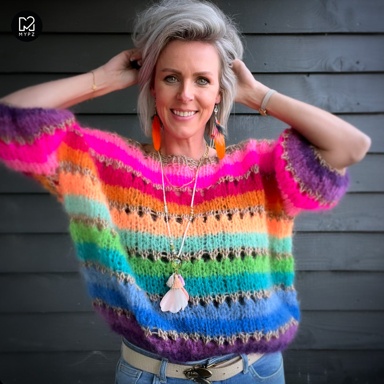 This is a handmade knit made by MYPZ in The Netherlands. Each cardigan or sweater is a unique piece and we take a lot of time and care to create these beautiful products. This beautiful sweater is made of a high quality mohair and does not pill. It is very light, warm and comfortable. These brushed yarns may shed a little but after a while, this will subside.